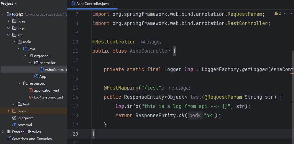 非常简单的一个项目,通过请求接口的参数控制日志内容