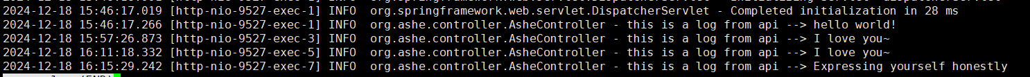 通过调用接口,less日志文件,可以看到已经有对应的日志输出了。
