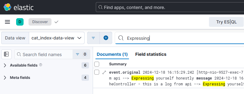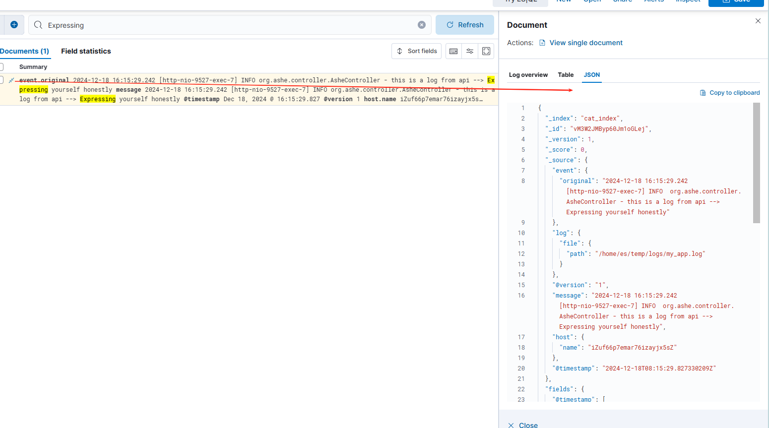 可以看到,已经查询到了对应日志所映射生成的document了。