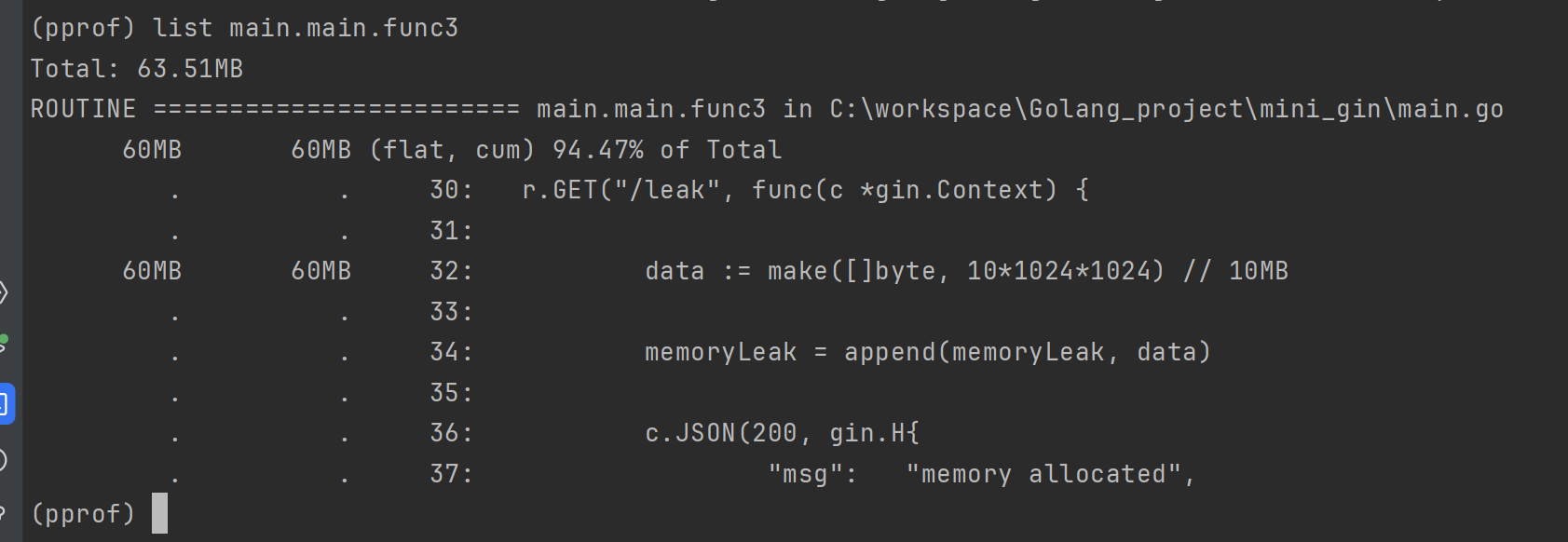memory-leak Golang的内存泄漏 Channel 阻塞导致的 Goroutine 泄漏 对象一直被引用,GC 无法回收 切片(slice)扩容导致底层数组无法释放 未关闭资源(间接导致内存泄漏) 简而言之,Go 的内存泄漏 = “对象因被意外引用而无法被 GC 回收” 当怀疑有内存泄漏时,可以使用 Go 的工具链—— pprof (Heap Profile): 模拟内存泄漏的web应用 go tool pprof http://localhost:6060/debug/pprof/heap top list main.main.func3 Comments